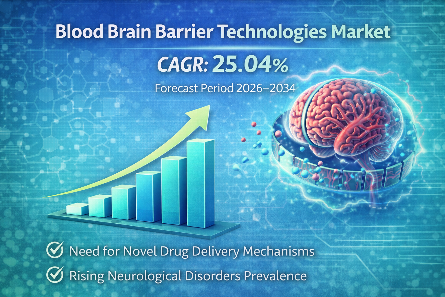 The Global Blood Brain Barrier Technologies Market is witnessing significant expansion due to the rising demand for advanced drug delivery systems targeting neurological disorders. The blood–brain barrier (BBB) is a highly selective membrane that protects the brain from harmful substances in the bloodstream. However, it also limits the delivery of therapeutic drugs to treat neurological diseases such as Alzheimer’s disease, Parkinson’s disease, brain cancer, epilepsy, and multiple sclerosis. As a result, the development of innovative blood brain barrier technologies has become a major focus for pharmaceutical and biotechnology companies.